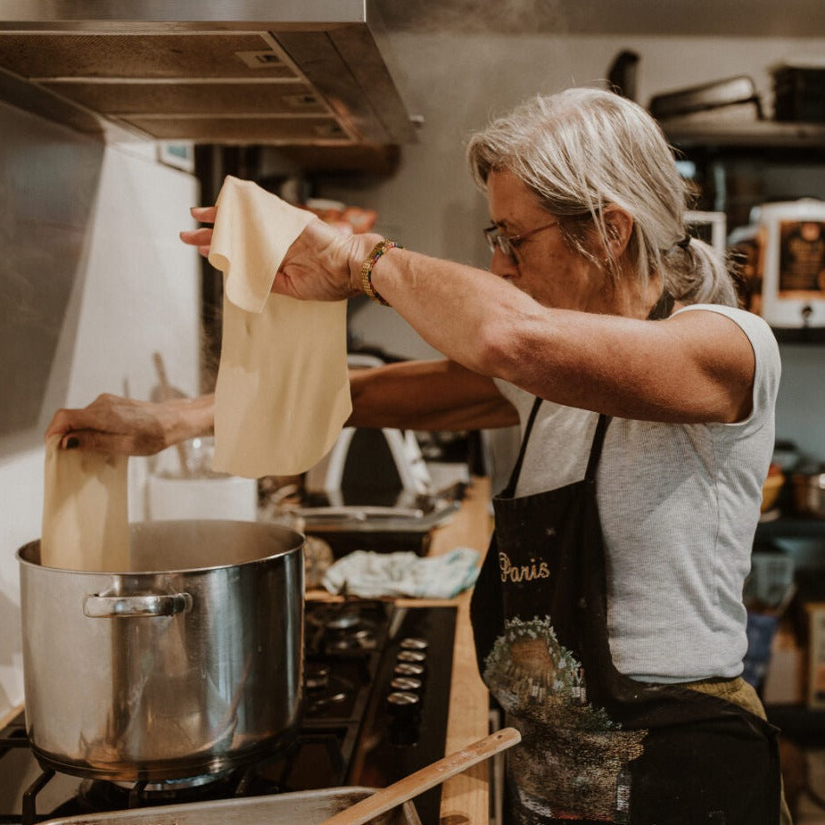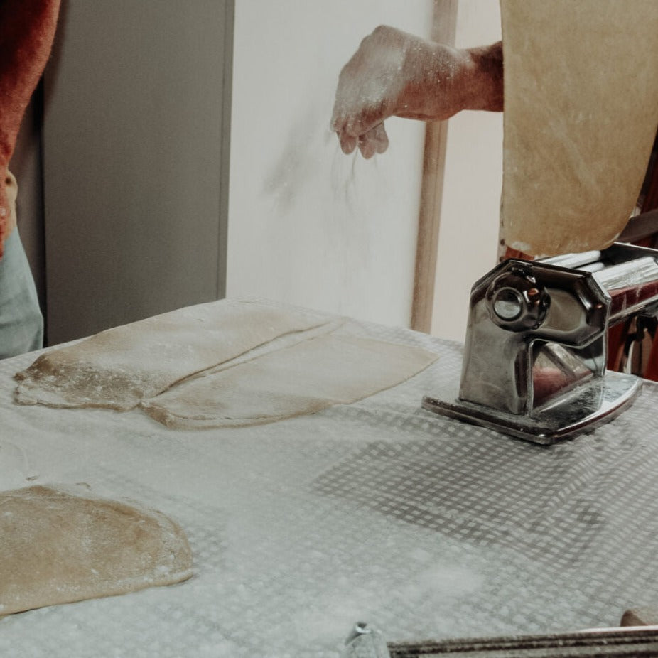 Homemade Organic Spelt flour pasta, organic beef and pork mince and organic tomatoes.